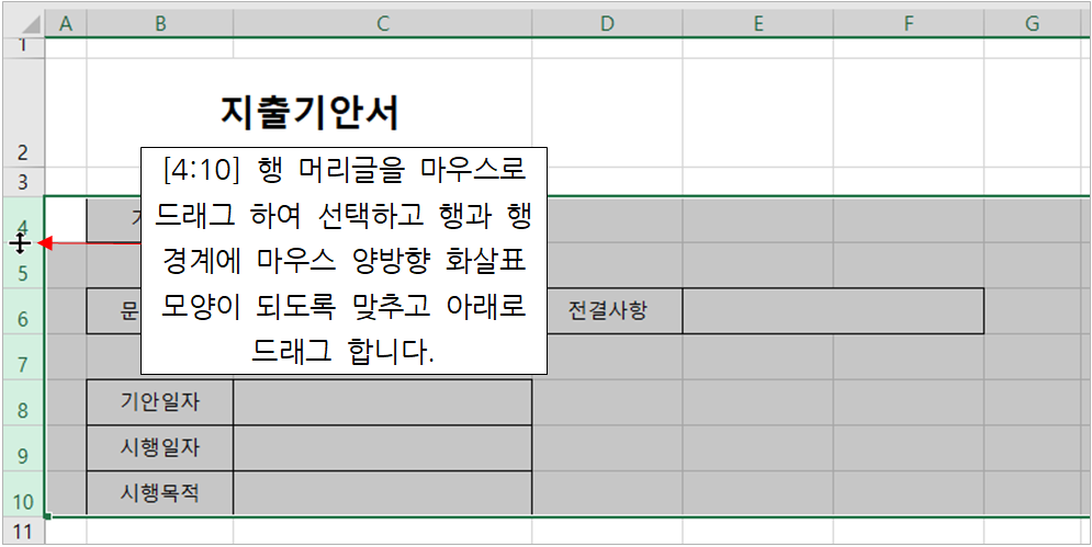 7. [4:10] 행 머리글을 선택하고 행 높이를 조금 늘입니다.