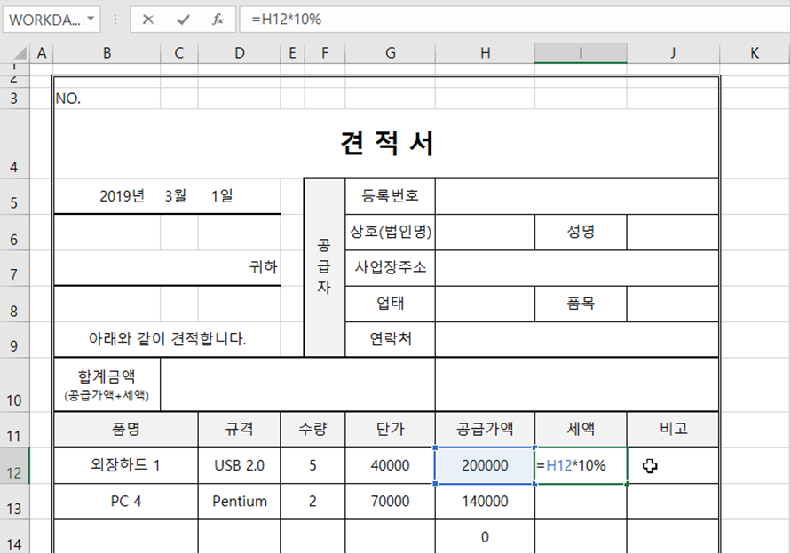 어떤가요? 점점 견적서가 모양을 갖추고 있죠?