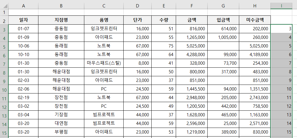 아래 예제로 사용할 데이터는 두 번째 거래된 데이터가 있는 행 번호가 짝수군요.