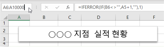 [A6] 셀에 1이 자동으로 입력됩니다.