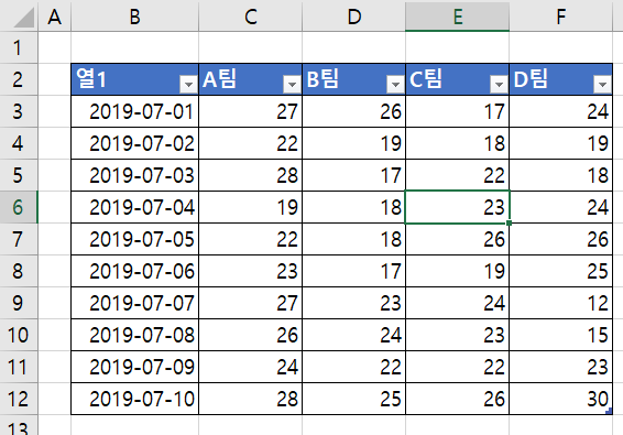 그럼 데이터에 바로 표 서식이 적용됩니다.