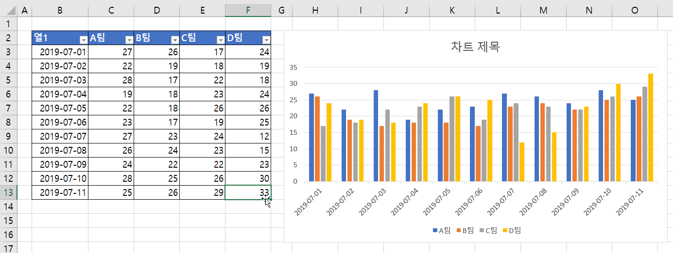 4. 7/11일자 데이터를 추가했더니 자동으로 차트에 반영이 됩니다.