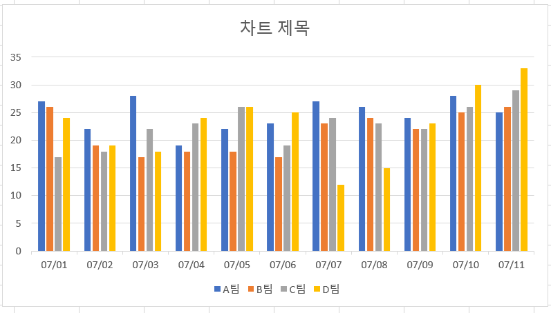 일정기간 동안 항목을 비교할 때 적합합니다. 묶은 세로 막대형 차트를 선택합니다.