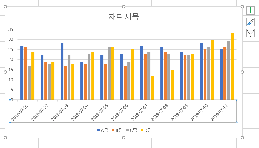| 엑셀 차트] 원하는 대로 만들어 지지 않는 차트 해결편 2탄 → 일자별 세로 막대 차트 (0) | 2019.07.09 |