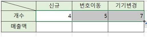 수식을 복사해서 번호이동, 기기변경 개수도 구합니다.