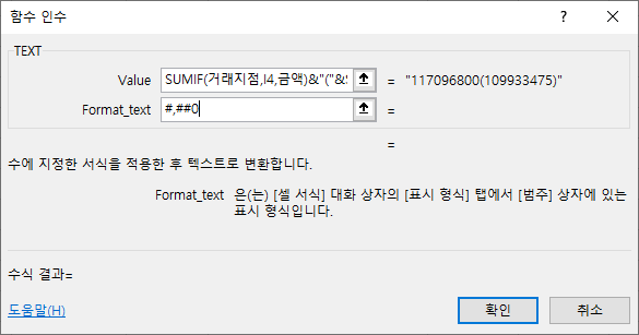 같은 방법으로 두 번째 사용된 SUMIF 함수에도 TEXT 함수를 중첩합니다.
