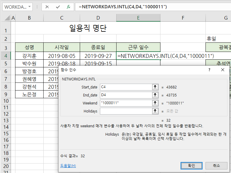 엑셀 40강] Workday, Workday.INTL함수