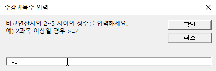 "예) 2과목 이상일 경우 >=2", "수강과목수 입력", ">=2")