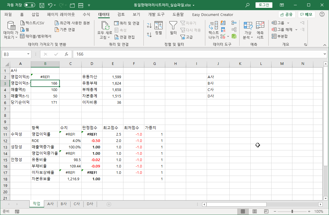 실제 사용하는 데이터는 200개 정도의 회사가 있다고 하셨는데, 예제 파일은 4개 회사만 예시를 들고 있습니다.