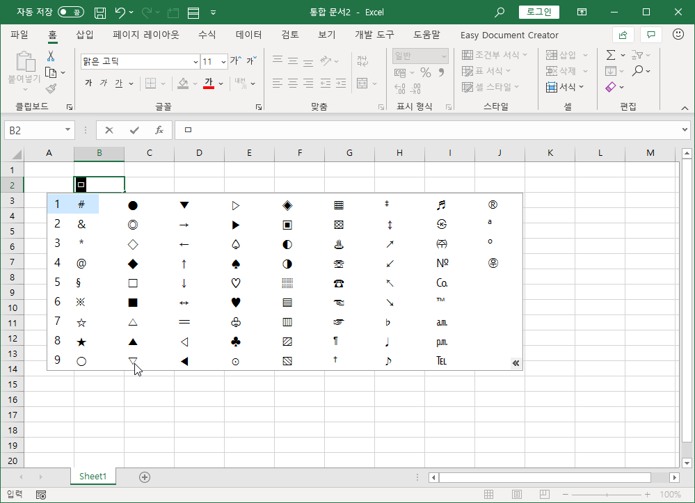 ㄱ부터 ㅎ까지 등록되어 있는 문자 모양이 다른데, 도형 기호는 ㅁ에 등록되어 있습니다.
