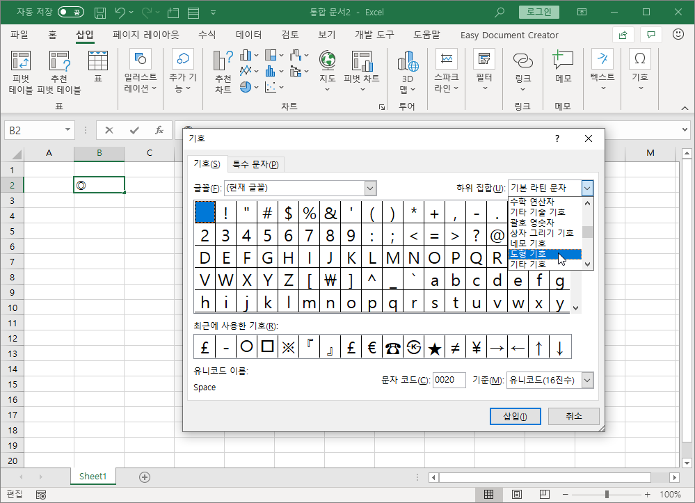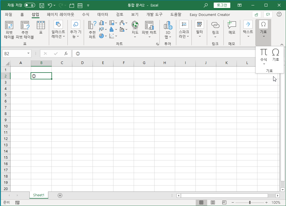 2. [삽입]-[기호]에서 찾아 입력