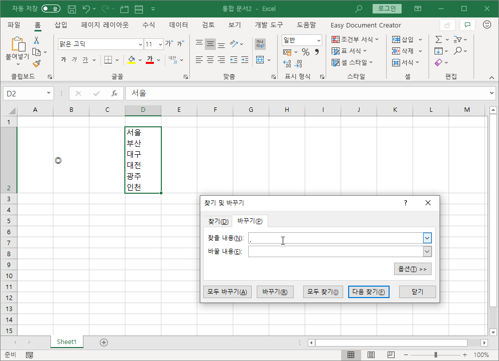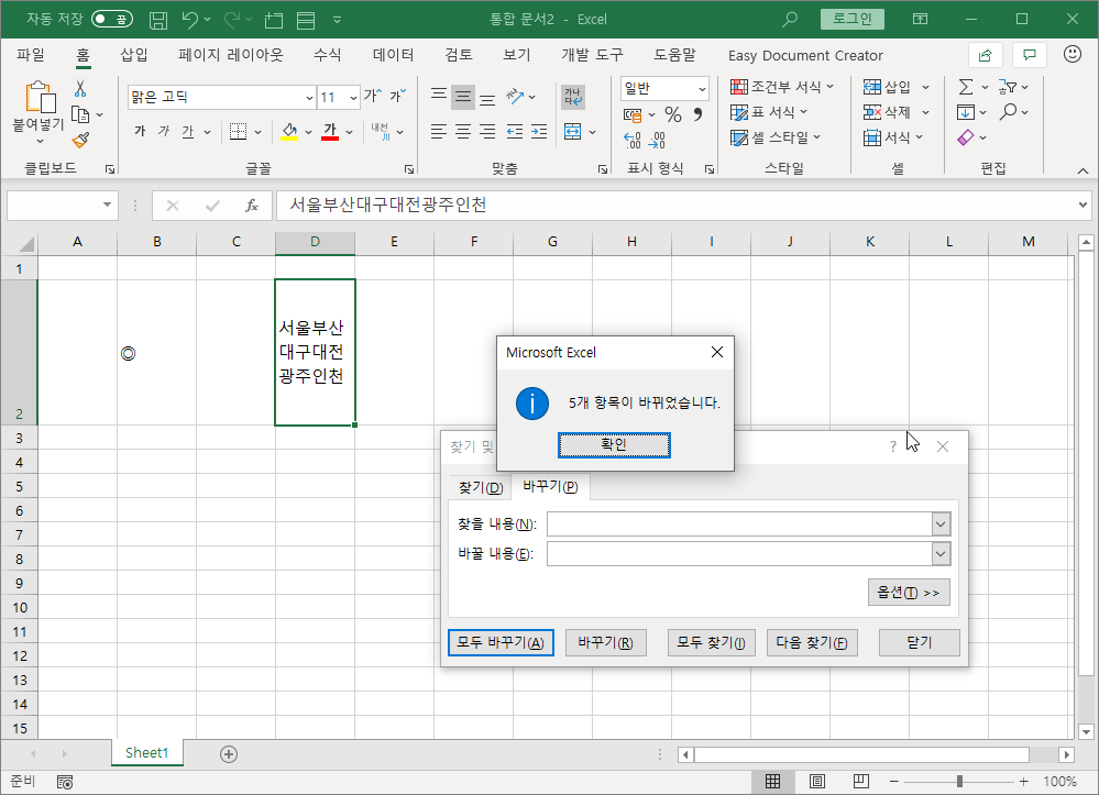 [모두 바꾸기]를 눌러 바꾸기를 실행합니다.