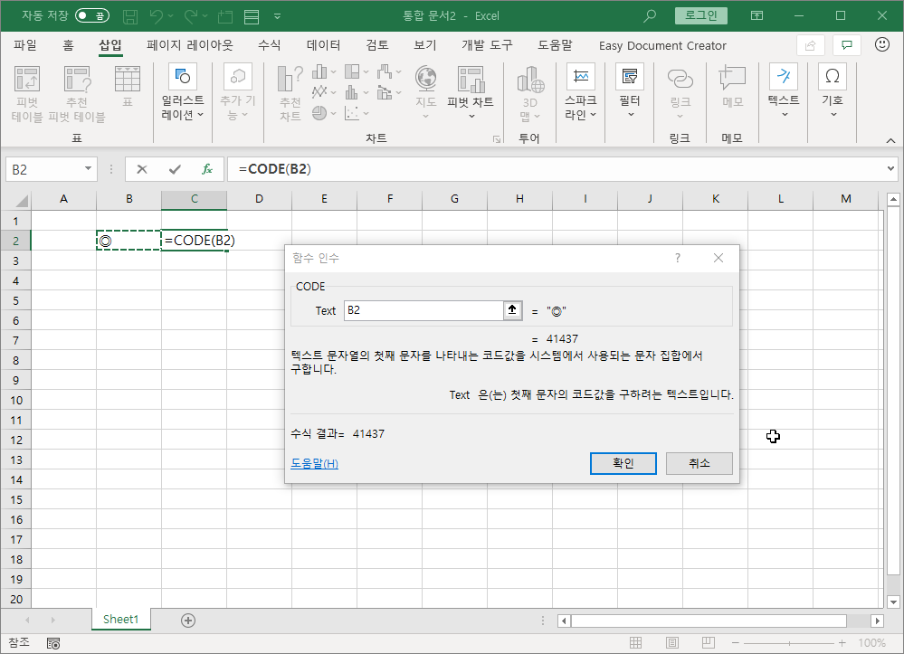 함수마법사 창에서 도형이 삽입되어 있는 셀을 선택하면 코드번호를 알려줍니다.