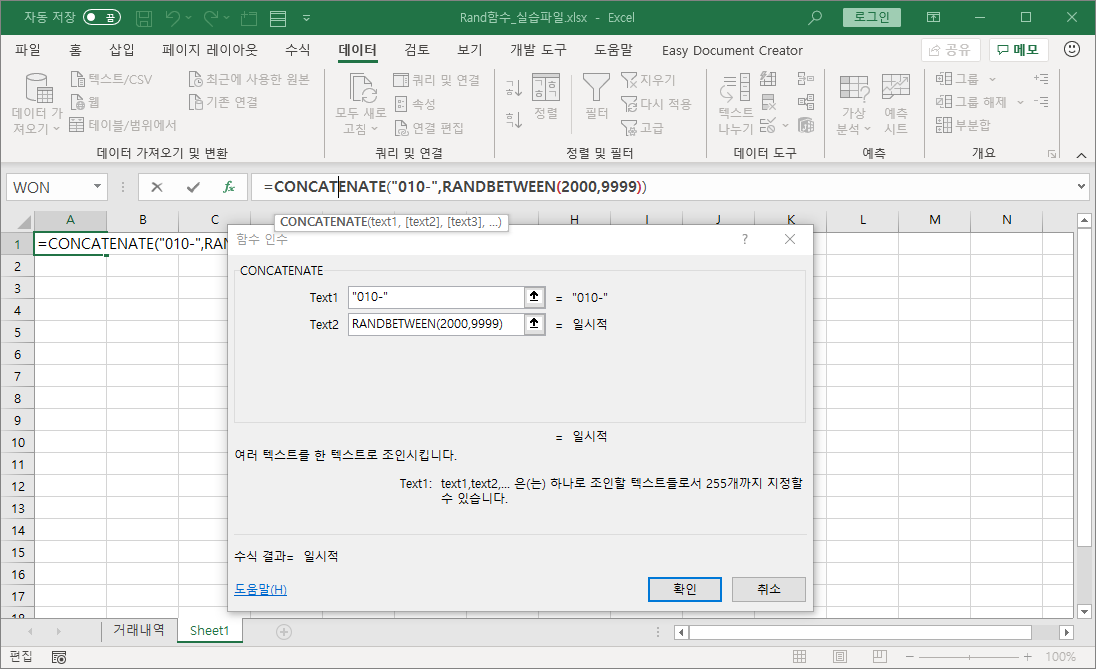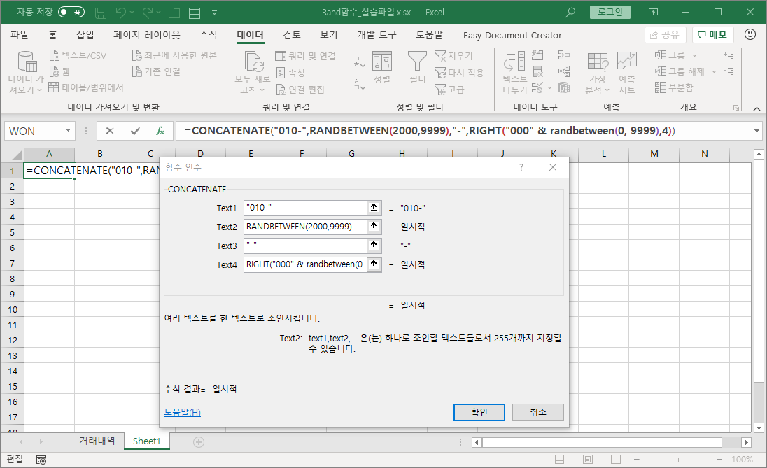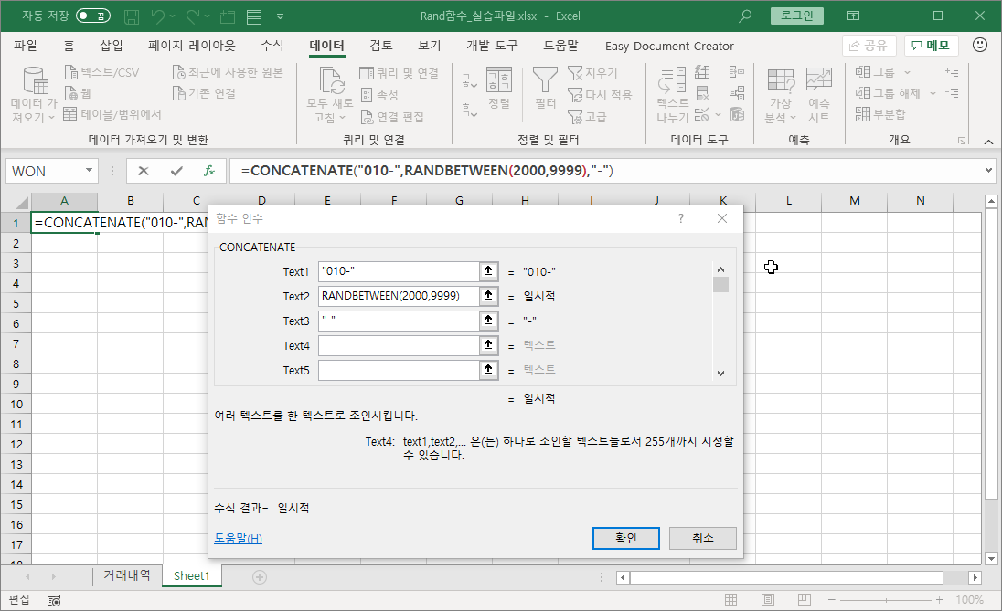 마지막 인수 Text4는 조금 복잡해 지는데, RANDBETWEEN에는 0, 9999를 넣을 겁니다.