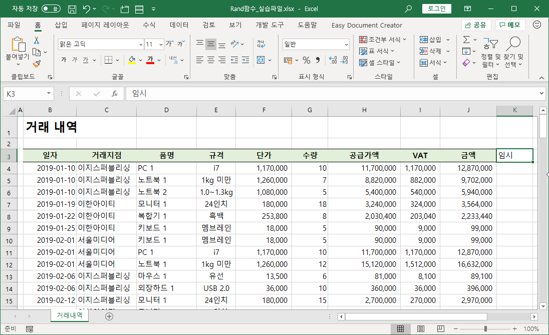 거래지점 필드나 단가 필드등 정렬 기준으로 사용할 필드를 제외한 다른 필드를 기준으로 정렬하면 흐트러진 모습을 보일 수 있지만 한 눈에 딱 봐도 다른 기준으로 정렬된 것이 보이므로 어색해 보입니다.