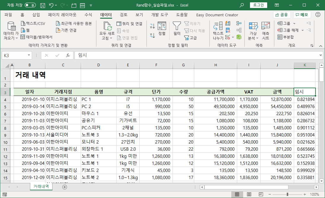 이번 강좌에서 소개할 함수는 RAND 함수와 RANDBETWEEN 함수 입니다.