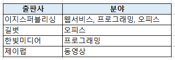 안녕하세요. 질문을 받았습니다. 출판사별 분야 목록을 나타내고 싶다는 것이었습니다. 원하는 결과 모습입니다. 몇가지 방법으로 구해 보겠습니다. 실습 파일 다운로드 완성 파일 다운로드 피�