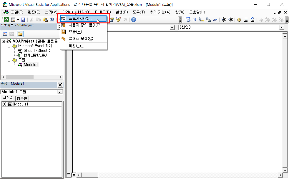 단축키 <Alt + F11>키를 눌러 VBE를 실행합니다.