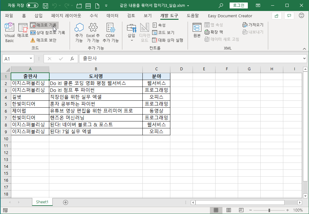 이 모든 작업을 VBA로 작성해 한 번에 실행하도록 만듭니다.