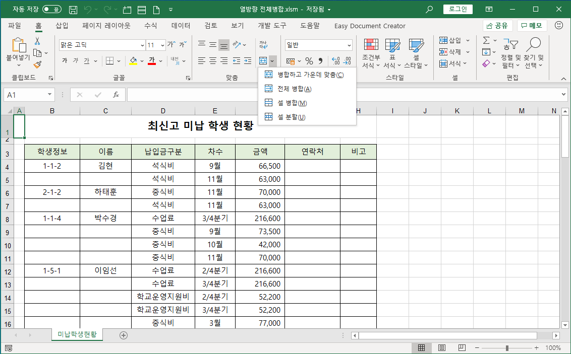 매크로 C_Merge1도 테스트해 보겠습니다.