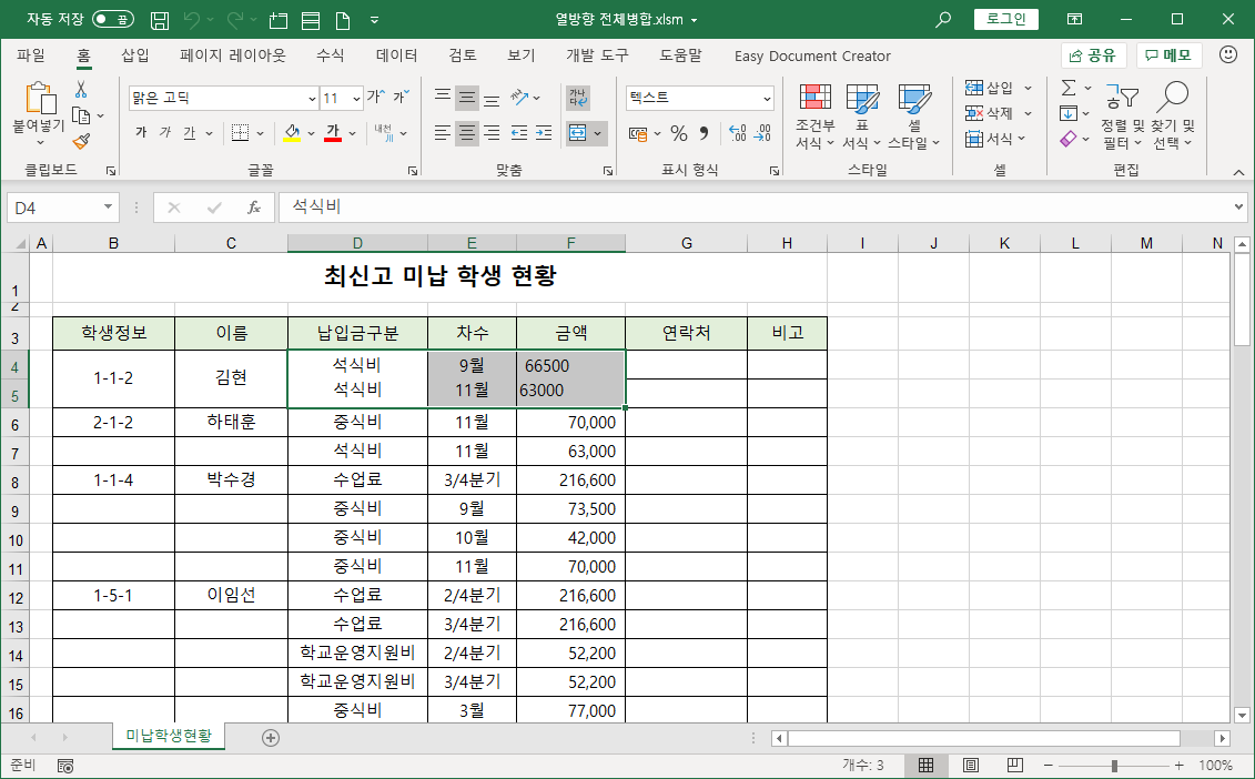 매크로가 실행된 결과를 확인할 수 있습니다.