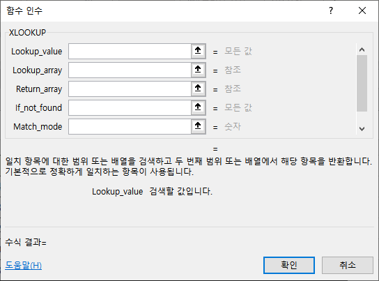 XLOOKUP 함수의 나머지 3개 인수는 If_not_found, Match_mode, Search_mode 입니다.