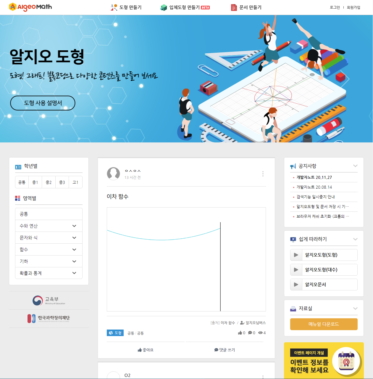 알지오매스는 2018년 한국과학창의재단이 교육부, 17개 시도교육청과 함께 개발하는 초중고 수학 실험 탐구용 무료 소프트웨어였습니다.