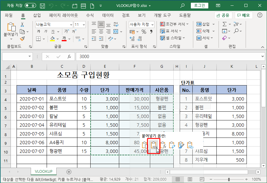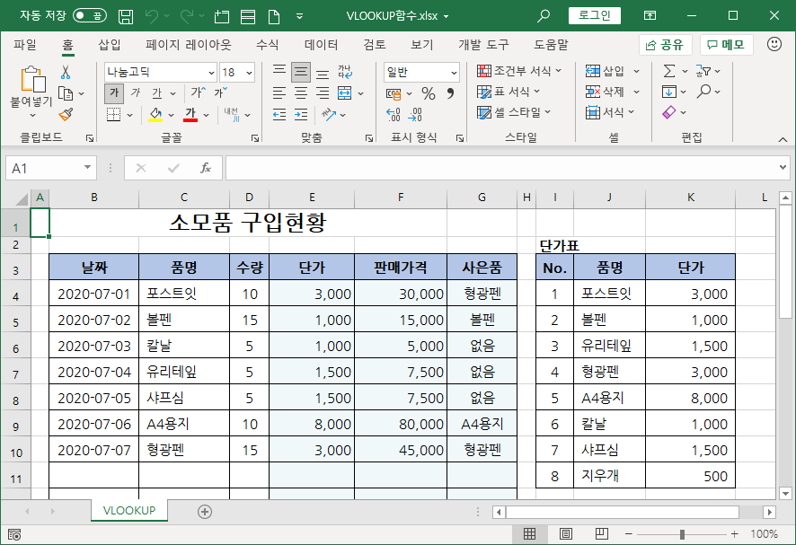 VLOOKUP 함수로 단가를 구한 경우에 생길 수 있는 문제와 이 문제 해결하는 방법을 예로 들어 소개하겠습니다.