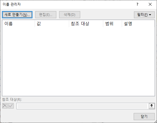 [수식]-[정의된 이름]-[이름 관리자]를 실행합니다.