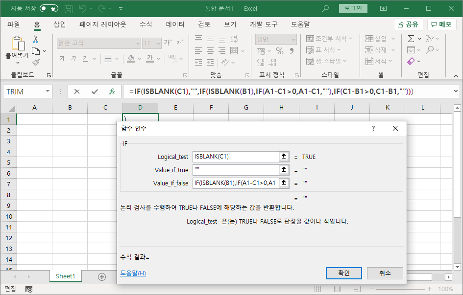 [A1] 셀이나 [B1] 셀이 비어 있는지 확인해야 합니다.