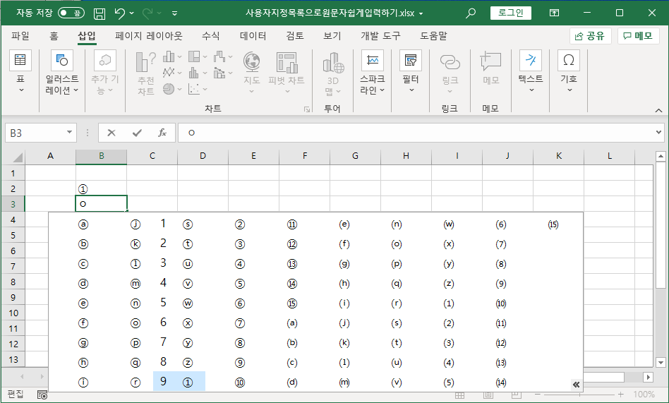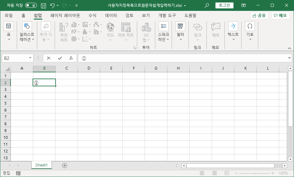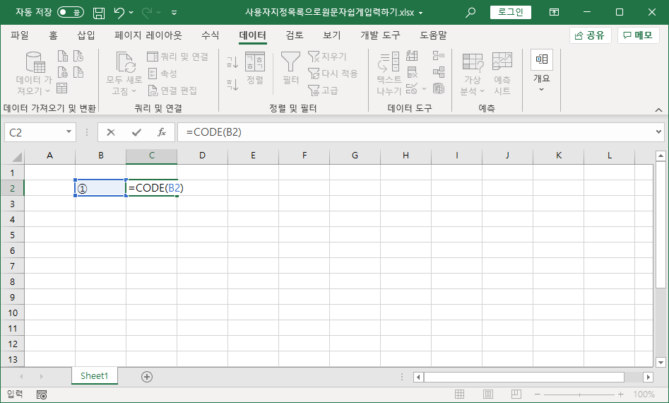 [B2] 셀에 원문자 ①을 나타내겠습니다.