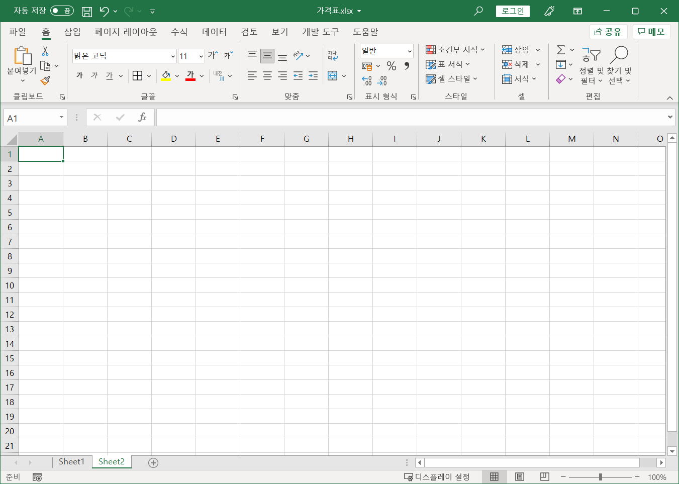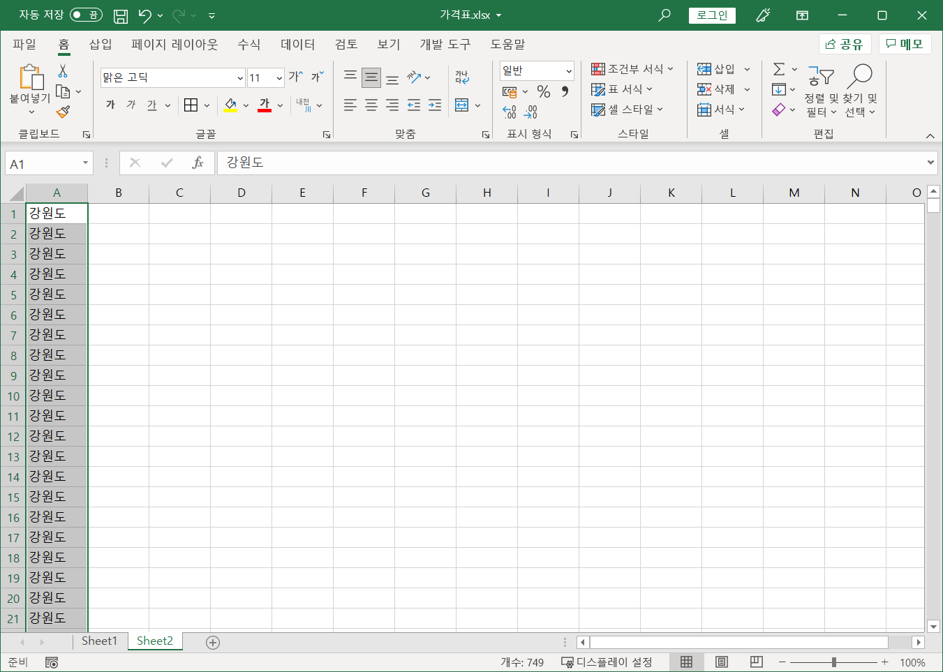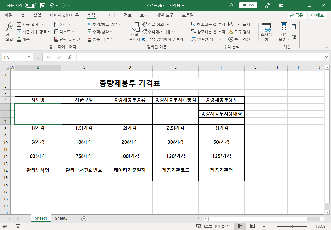 이제 가격표 파일에서 작업을 합니다.