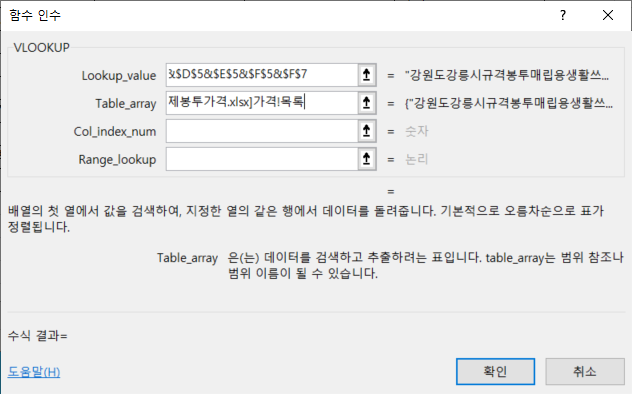 VLOOKUP 함수 작업