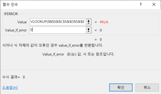 두번째 Value_if_error 인수에 0을 입력합니다.