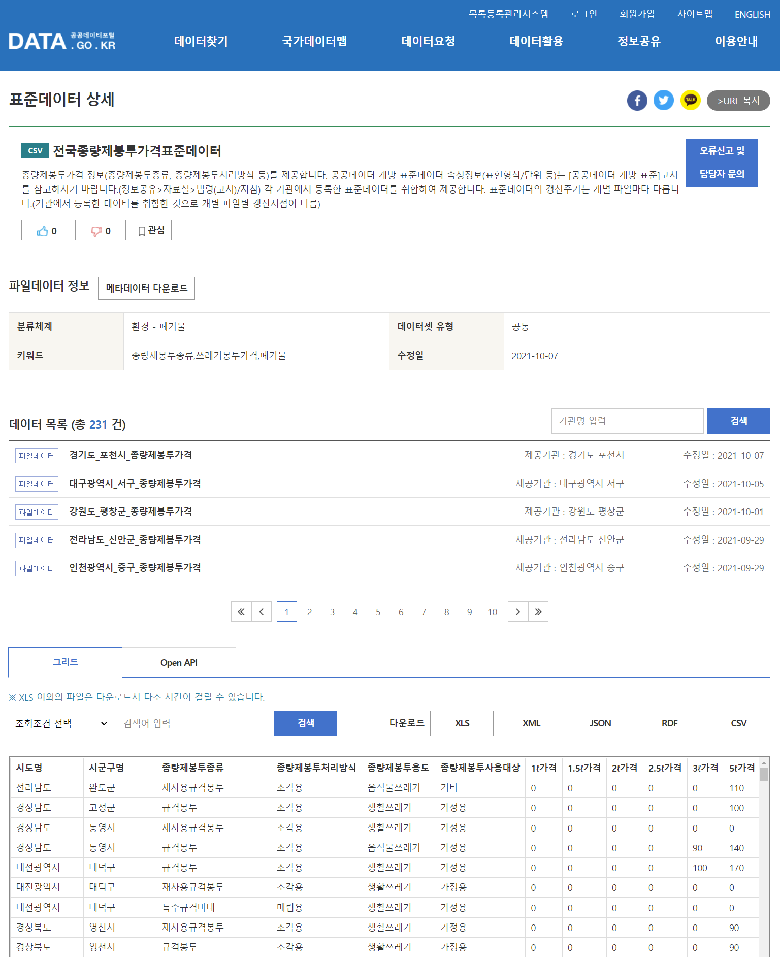 전국종량제봉투가격표준데이터(https://www.data.go.kr/data/15025538/standard.do)