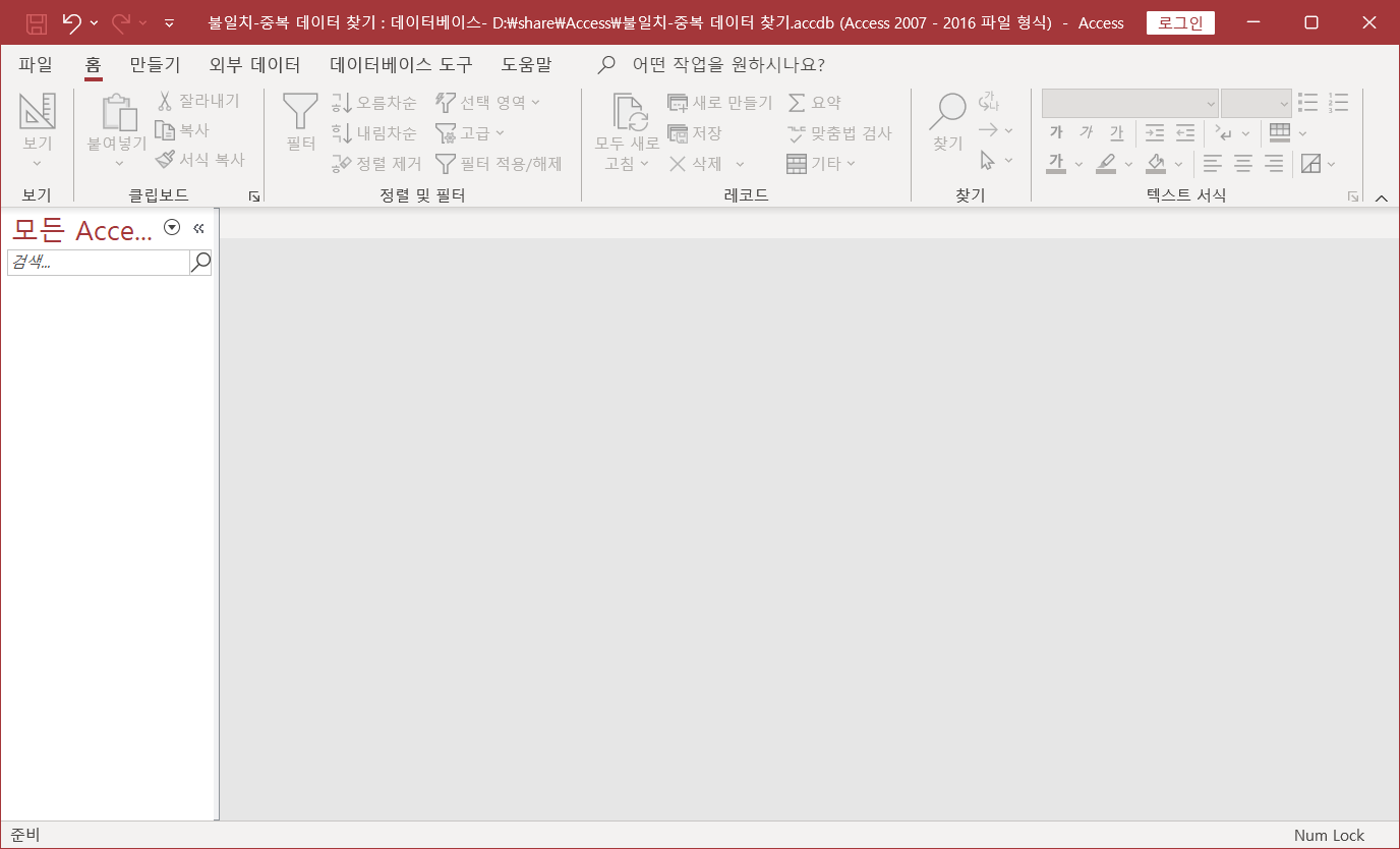 현재 액세스 파일은 아무런 데이터도 없는 빈 데이터베이스 파일입니다.