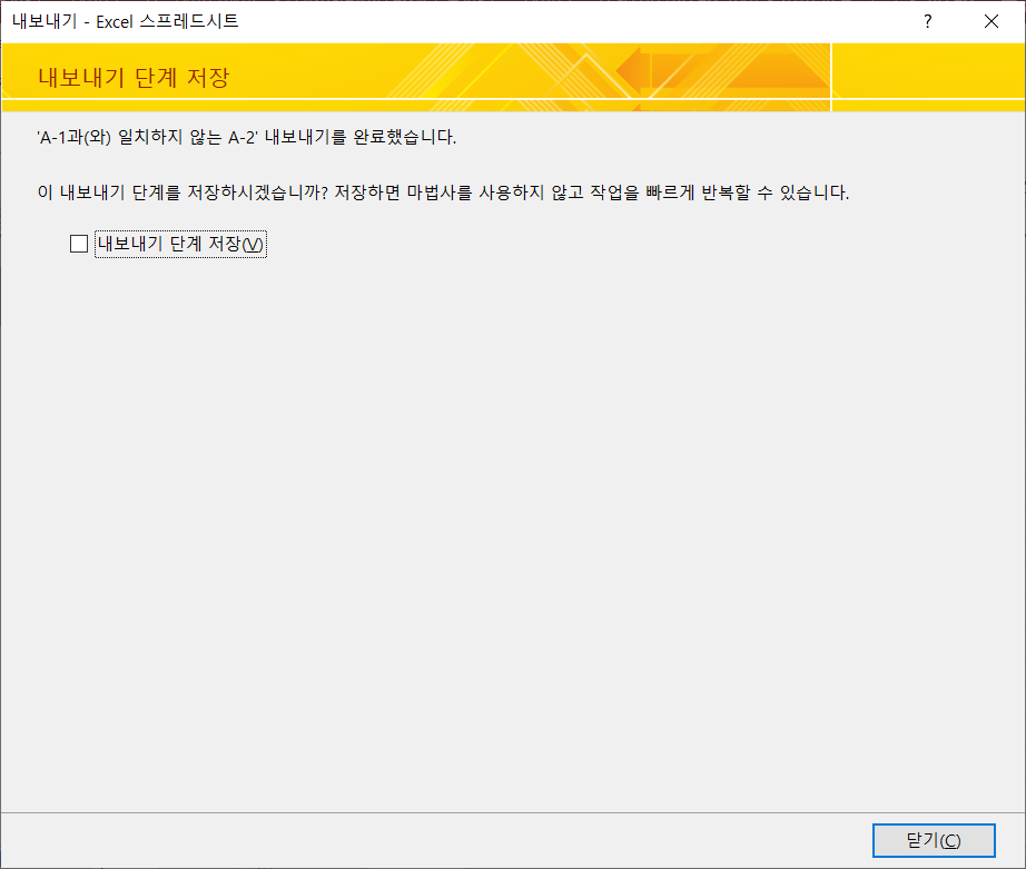 '내보내기 단계 저장'은 선택하지 않은 상태에서 [닫기]를 클릭합니다.