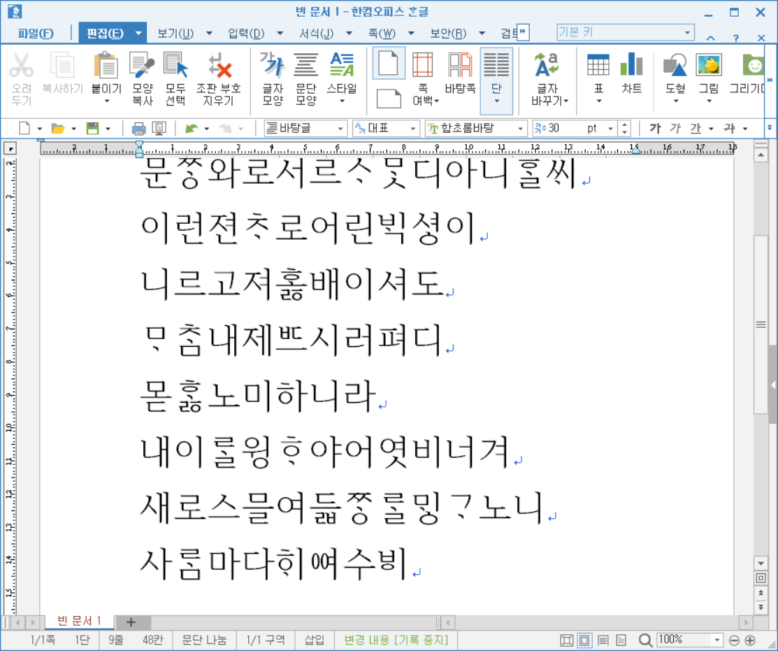 '나랏말ᄊᆞ미'까지는 그냥 입력할 수 있습니다.