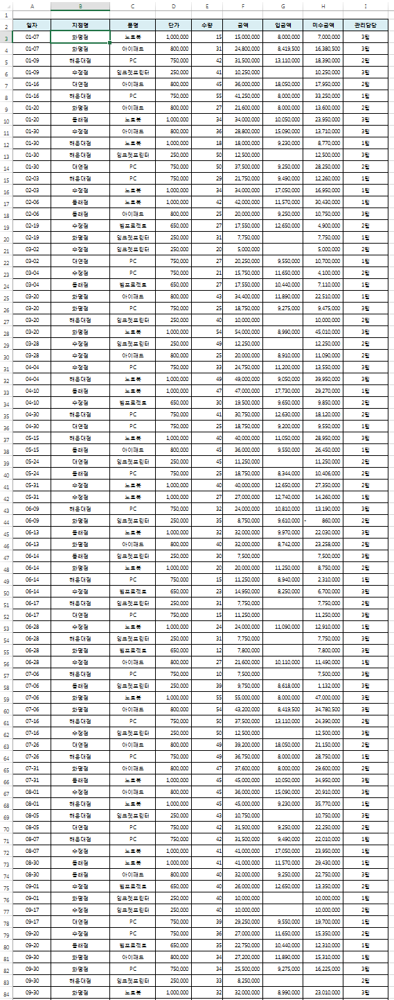 실제 필자가 실무자에게서 도움 요청을 받는 데이터 같은 경우에는 심하게는 6만줄 이상의 데이터를 다루는 분들도 많이 있습니다. 말이 6만줄이지 어마어마한 양입니다.