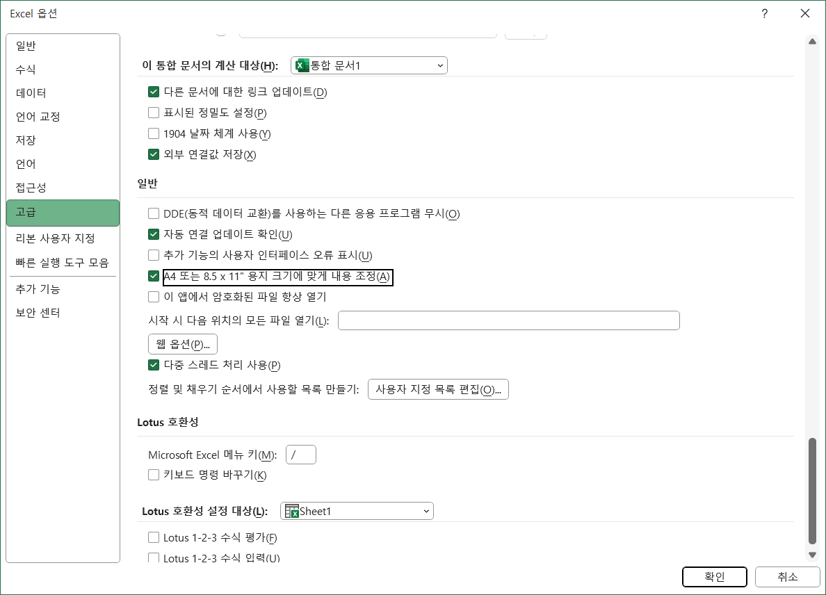 엑셀은 [파일]-[옵션]-[고급]-[일반] 항목 중에 있습니다.