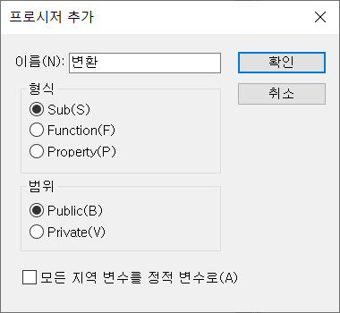 [프로시저 추가] 대화상자에서 [이름]을 적습니다.
