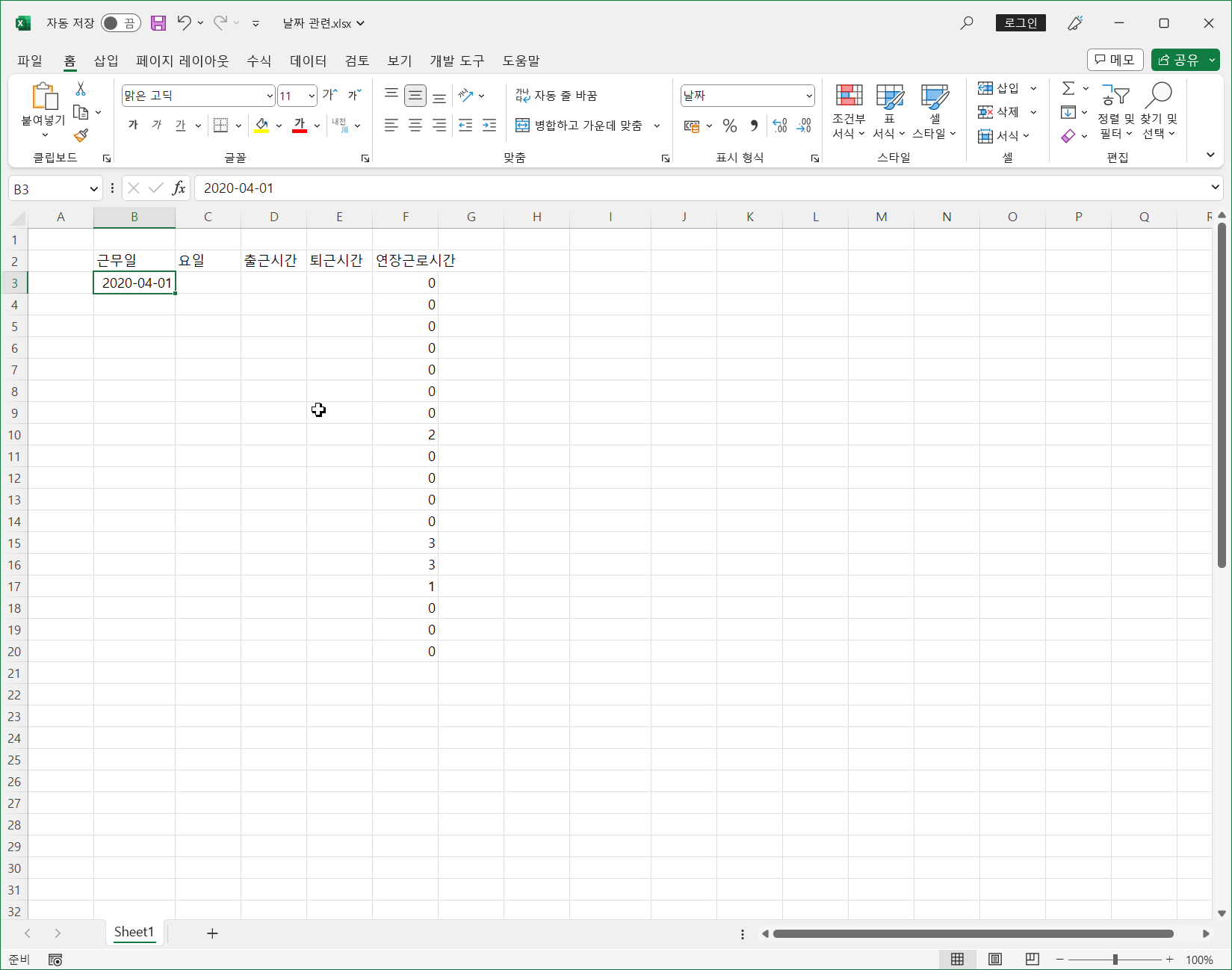 [B3] 셀을 선택하고 시작 날짜 2020-04-01을 입력합니다.