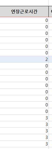 두번째 질문 내용인 연장근로시간에서 0을 찾아 없애는 작업을 합니다.