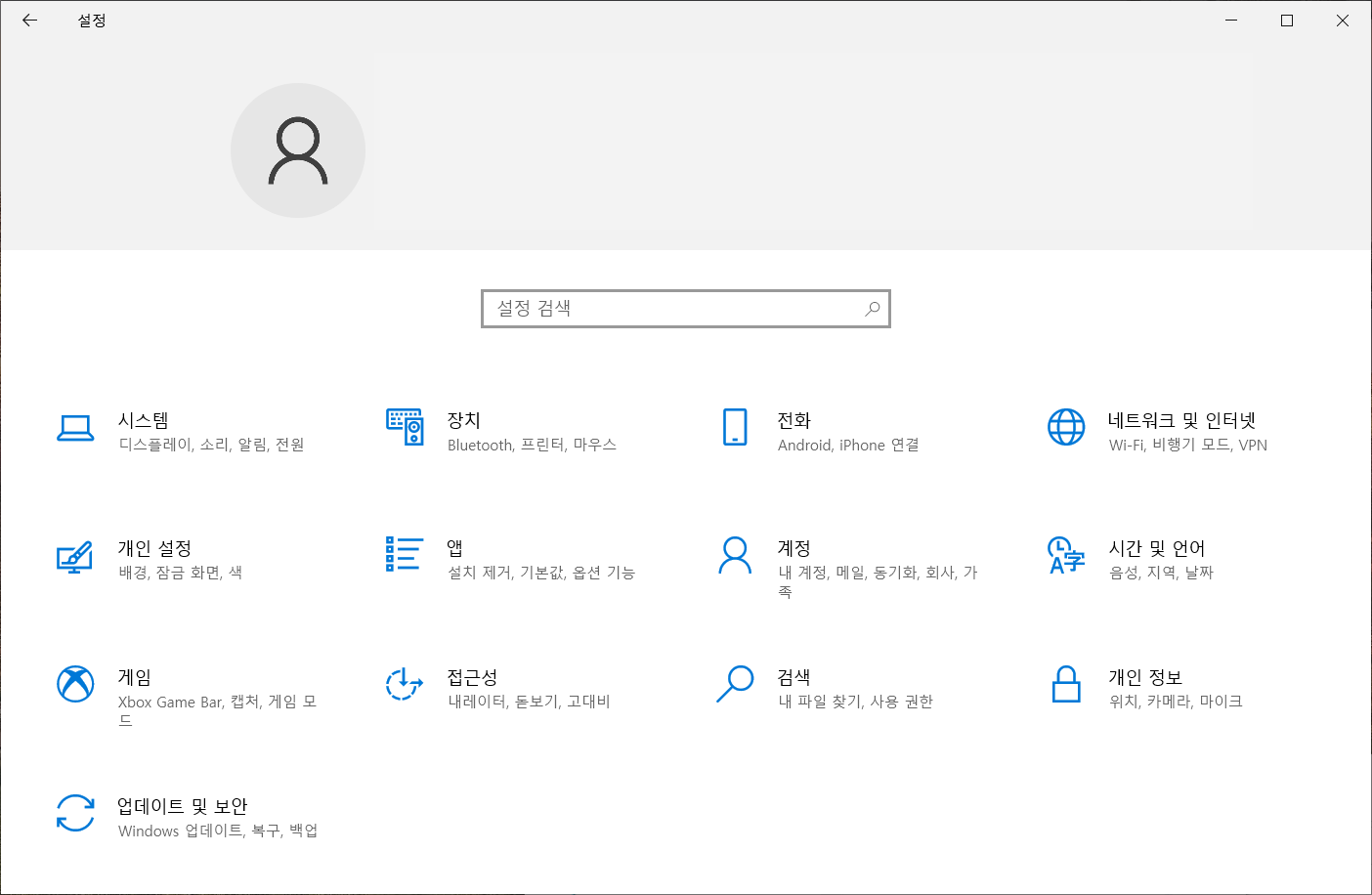 [설정]에서 [시간 및 언어]를 선택합니다.