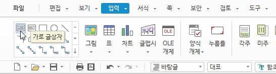 2. [입력] - [가로 글상자]를 선택한 후 오른쪽 아래로 드래그해 글상자를 삽입합니다.