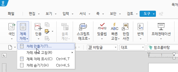 한글에서는 목차를 쉽게 만드는 기능을 제공합니다.