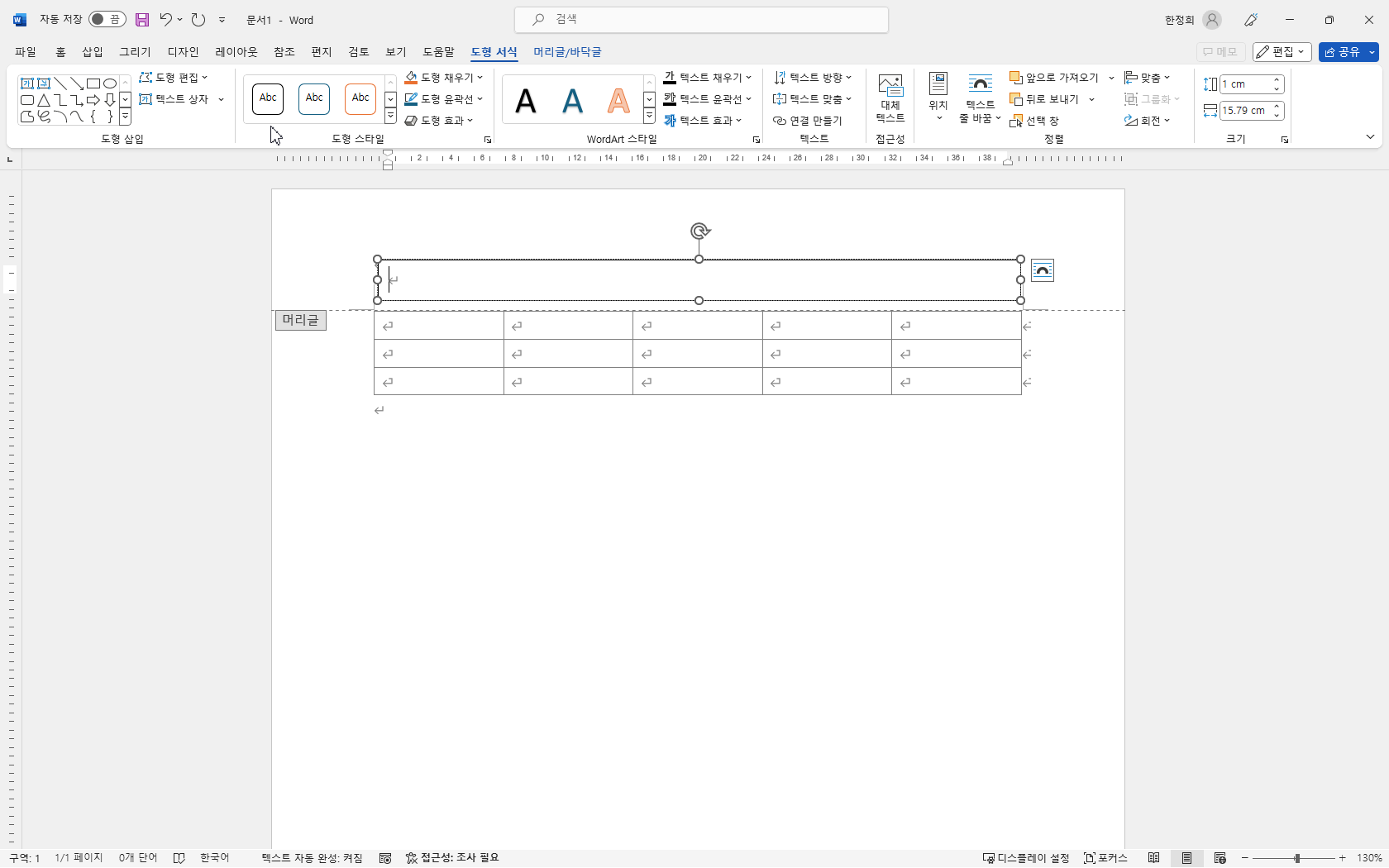 머리글에 텍스트 상자를 삽입했습니다.