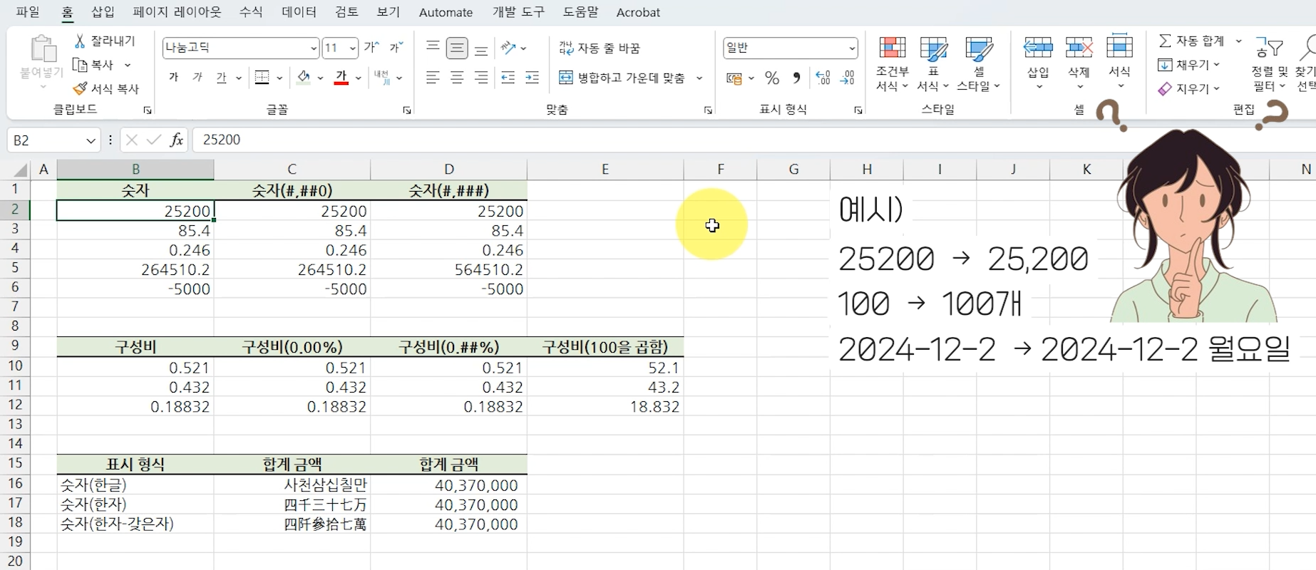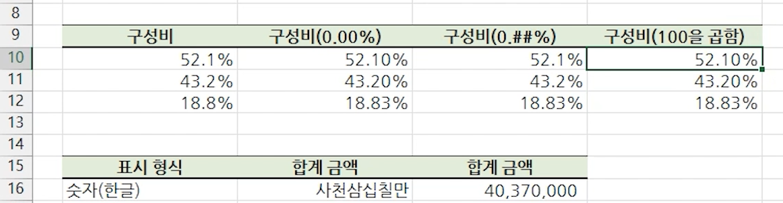 셀에 입력된 데이터를 빠르게 인식하고 읽기 쉽게 하려면 데이터 표시 형식 설정을 알고 있어야 합니다.