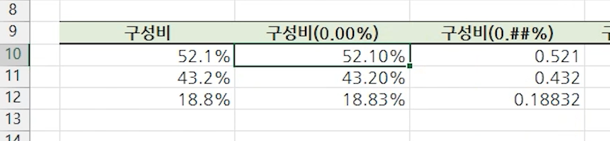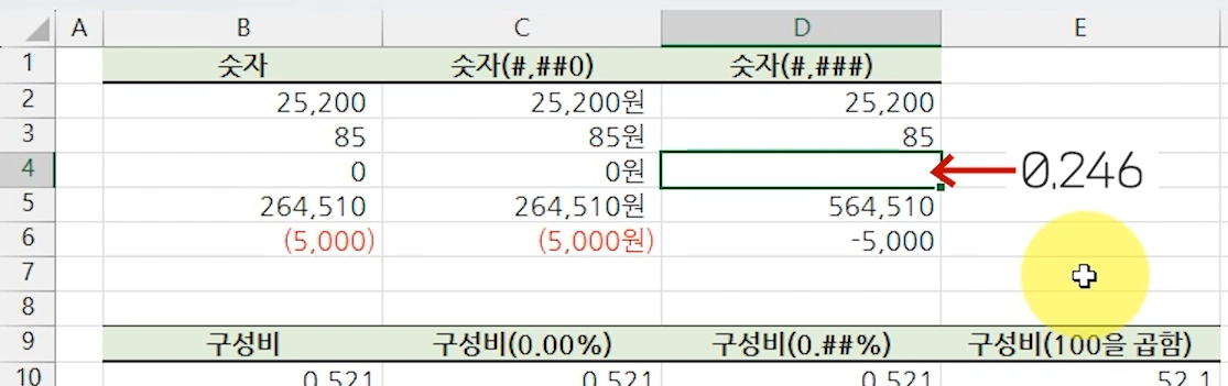 0.246이 공백으로 표시되었죠? 필요에 따라 0을 공백으로 표시해야 할 때도 있습니다.
