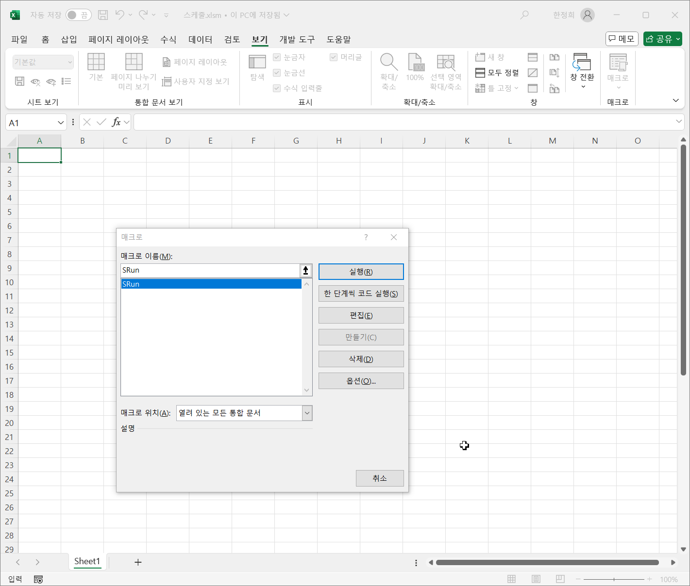 사용자는 SRun 매크로만 볼 수 있어야 합니다.